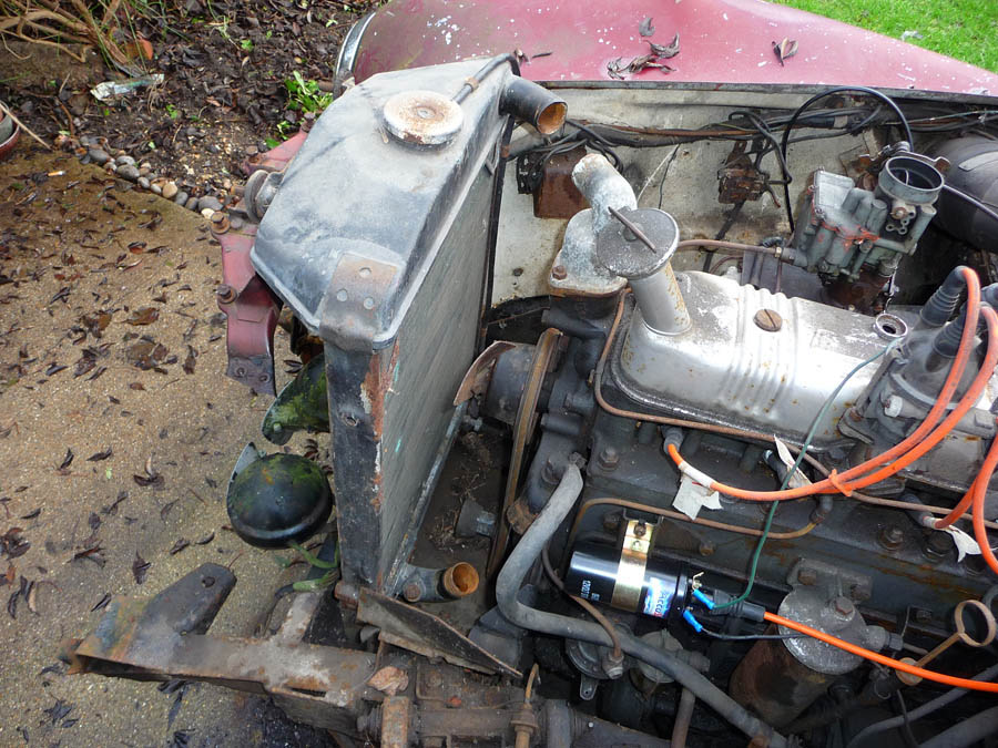 As mentioned on the 'about Tynny' page we decided we had to give her a 'fair chance’. This meant a series of stages to see if she would become a going concern. The first of which was to get her engine running. Remarkably turning the engine over by hand on the starting handle revealed the engine was not seized, nor was the transmission. We did however find no spark and no fuel, so a new coil, HT lead and spark plugs were bought along with some fresh petrol and she soon burst into life. See Tynny's You Tube channel for more.
