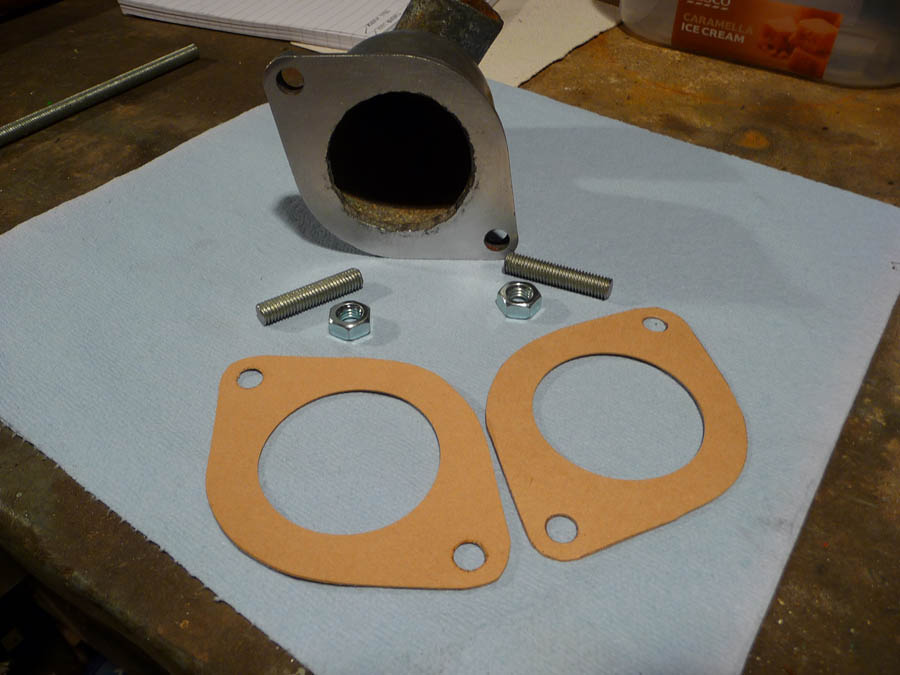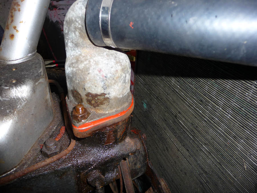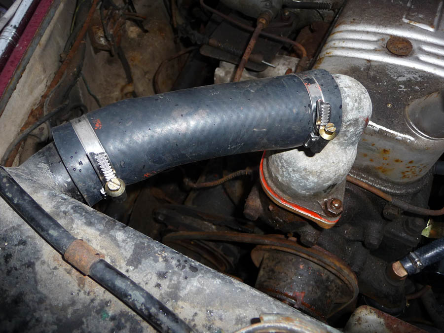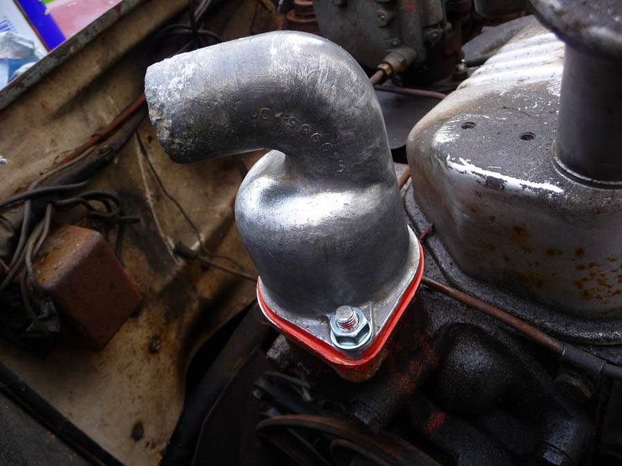 I decided to bypass the whole heating system as we didn't need this to get the cooling system working and so didn't warrant the possible leaks that might happen. So a length of heater hose was connected straight from the water pump housing to the top of the cylinder head.