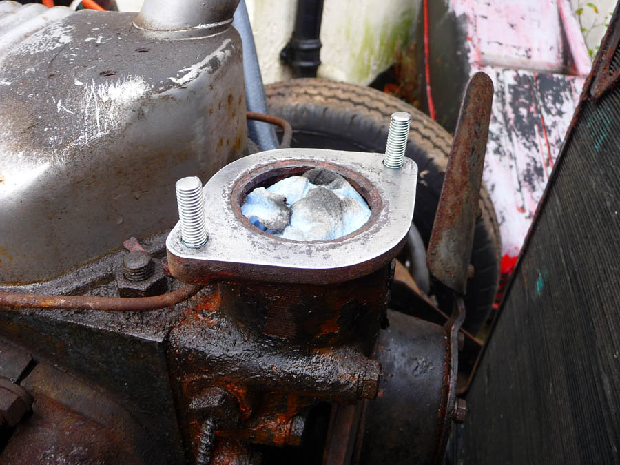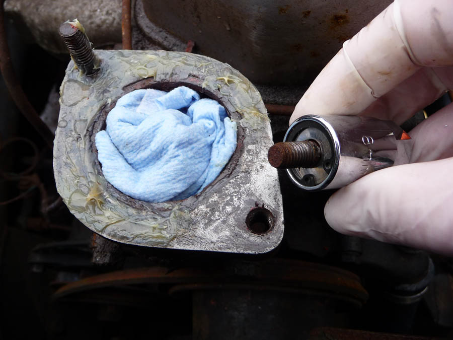 After much self flagellation later I decided to give it best smear a load of grease on the virgin metal and stuff some blue roll down the hole to prevent lumps of crud falling into the water jacket. Well at least that was sensible.