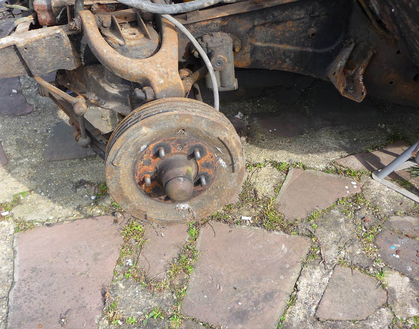 The offending nearside rear which not only had a bad tyre, but unlike the other three wheels, was seized solid, Grrrr!