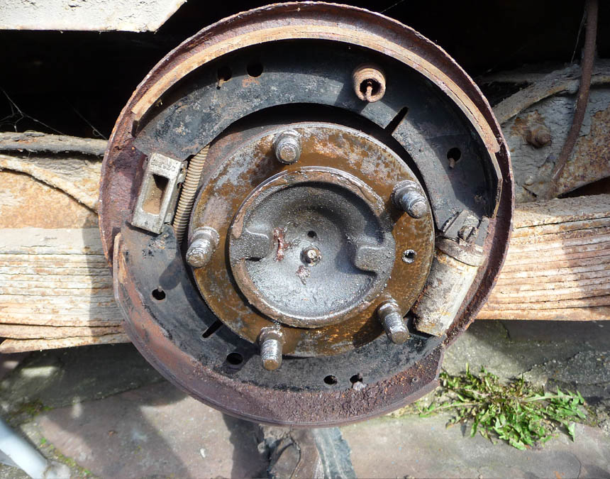 With much sweating and effort the rear drum finally succumbed to elbow power and ‘vice-like’ grip, oh and a soft faced mallet. Having a look over what was underneath revealed the culprit, or rather